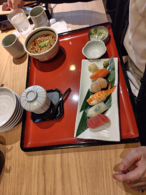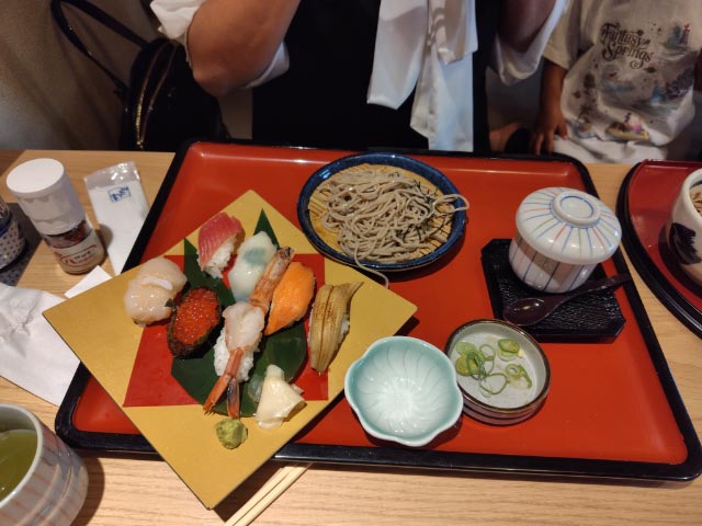 本人:上寿司天ざる御膳、Mさん:握寿司華・Hそば
