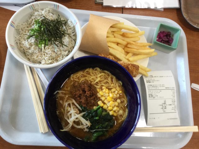 ローストビーフ丼、しらす丼、キッズラーメンセット、味噌ラーメン、ポテから盛ハーフ:\4850/4人