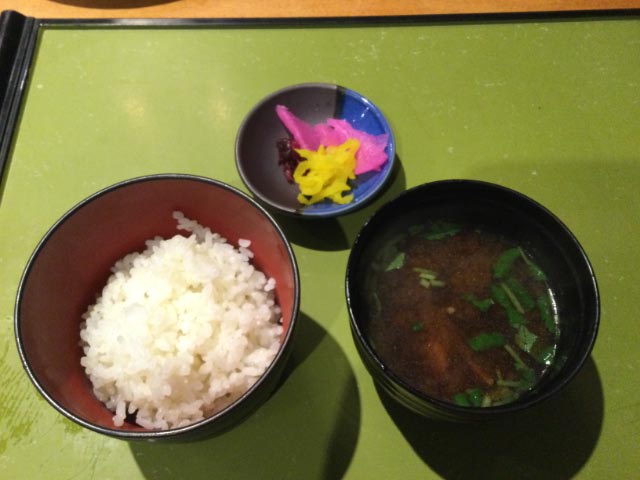 夕食コース、御飯、味噌汁、漬物、一人鍋、天ぷら、コーヒーゼリー:宿泊料に含む